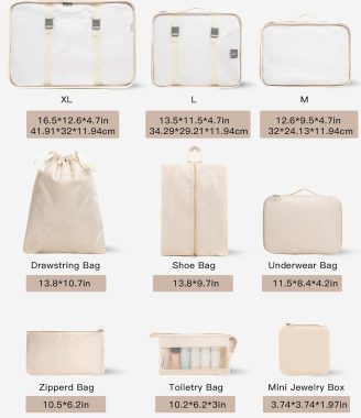 TRAILKICKER 9 Set Packing Cubes for Carry on Suitcase Travel Organizer Bags for Luggage Suitcase Organizer Bags Packing Cube Set for Packing Women Men (Beige)