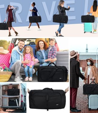 65L Duffle Bag with Shoes Compartment, Foldable Travel Duffel Bags for Men Women, Large Packable Travel Bag Water Repellent & Tear Resistant (Black)